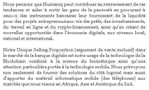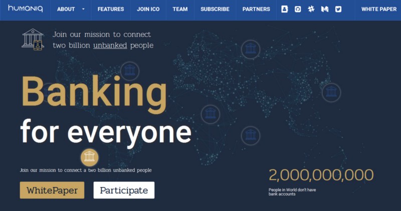 Humaniq : L'équipe Humaniq est en train de bâtir pour les services financiers un modèle de nouvelle génération (Banking4.0) basé sur la technologie de la Blockchain, les appareils portatifs et les systèmes d'identification biométrique.